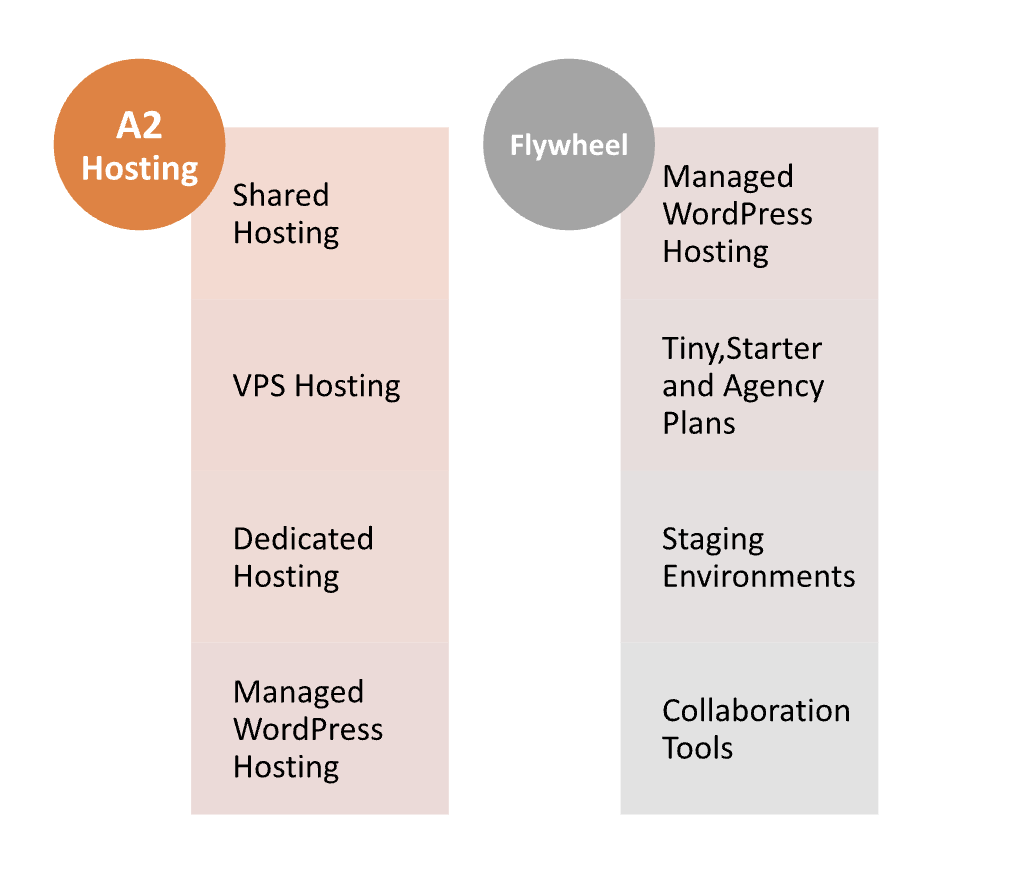 A2 Hosting offers shared, VPS, reseller, dedicated, and managed WordPress hosting. Flywheel specializes solely in managed WordPress hosting.
