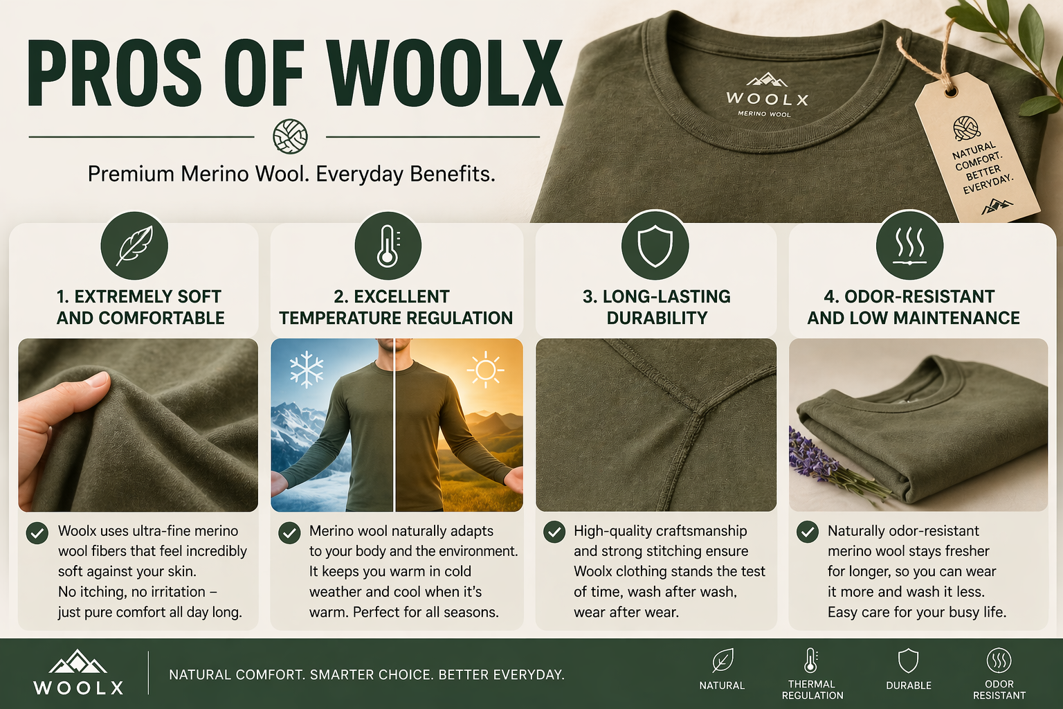 Comfort isn’t just about softness—it’s also about how your body feels throughout the day. Woolx excels here thanks to merino wool’s natural breathability.